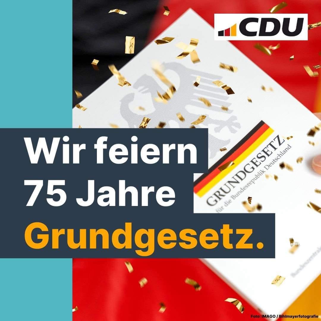 Wir wollen ein Deutschland, dass in Freiheit, Sicherheit und Wohlstand lebt. Das Grundgesetz ist dafür das Fundament. Es setzt den Grundstein unserer demokratischen Gesellschaft. Deshalb feiern wir heute 75 Jahre Grundgesetz und damit auch unsere Freiheit und Demokratie,