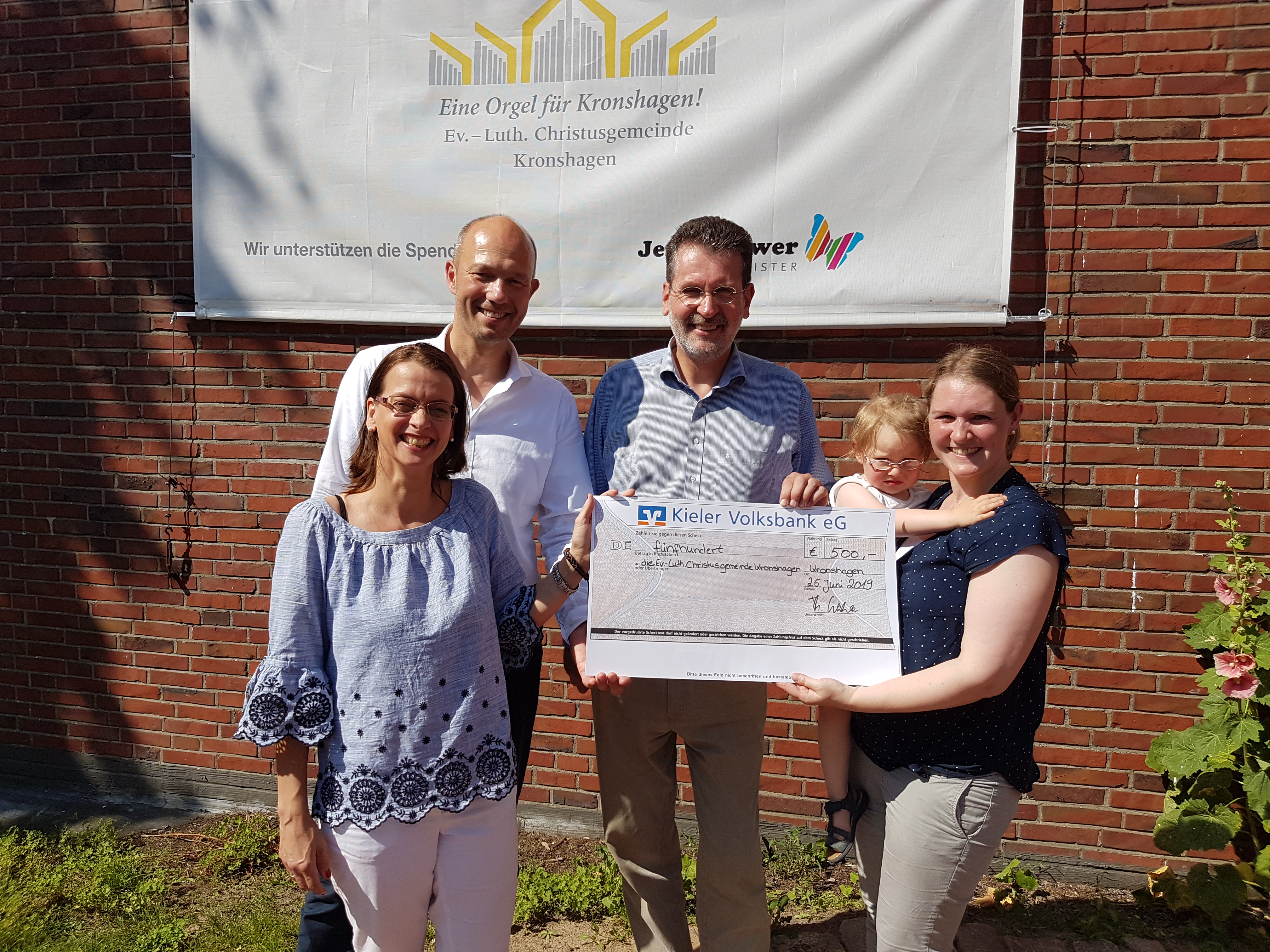 Am Dienstag Nachmittag übergaben der CDU-Ortsvorsitzende Thomas Kahle und die Schatzmeisterin Gesa Maria Kiewitz für die CDU Kronshagen den Reinerlös der Tombola der Kronshagener Ballnacht im März 2019 in Höhe von € 500 an Pastorin Ina Strege und Pastor Sascha Lohmann von der Evangelischen Christuskirche für das Projekt "Eine Orgel für Kronshagen" übergeben.
