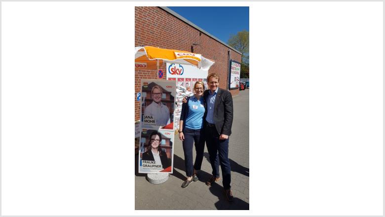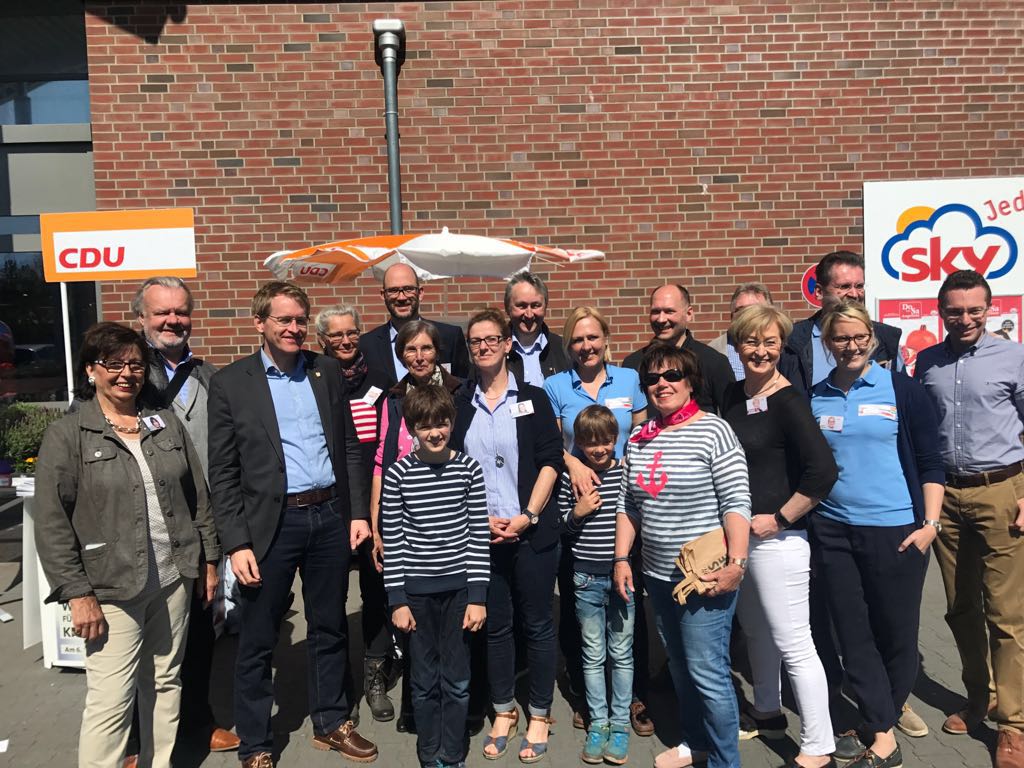 Heute standen wir ein letztes Mal an unseren drei Infoständen der CDU Kronshagen und haben vor dem Sky-Markt im Hühnerland, in der Ladenzeile an der Bürgermeister-Drews-Strasse und vor Markant in der Fußsteigkoppel informiert. Bei strahlendem Sonnenschein sind wir erneut mit vielen interessierten Kronshagener Bürgerinnen und Bürgern ins Gespräch gekommen. Heute wurden wir noch einmal ganz besonders von Thomas Stritzl, Hauke Götsch (MdL) und unserem CDU-Landesvorsitzenden und Ministerpräsidenten Daniel Günther unterstützt. Das hat viel Spaß gemacht. Es ist schön zu sehen, wie sich Kronshagen informiert, interessiert und engagiert.