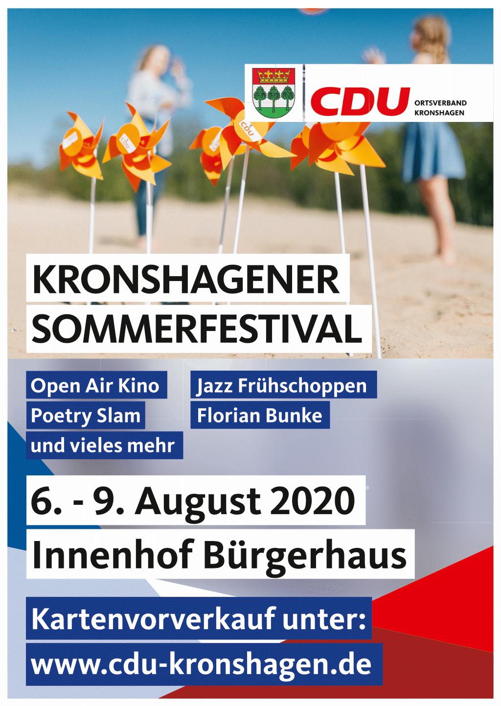 Zum Ende dieser Sommerferien veranstaltet die CDU Kronshagen vom 6. bis zum 9. August ein langes Kulturwochenende im Innenhof des Bürgerhauses.